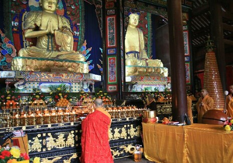 凌云寺在凌云山顶,被凌云九峰环抱,寺宇辉煌。因是大佛所在,所以又叫大佛寺。凌云寺创建于唐代,据史料记载早于大佛开凿之前,距今已有一千二百多年。唐开元初年(公元713年)开凿佛像时,寺宇又有扩建。唐建凌云寺,毁于元顺帝战乱,明代进行了两次圈套修复,明末又经兵燹,大部分被毁。现存凌云寺是清康熙六年(公元1667年)重新修建的。以后又经多次修葺,尤其是建国以后不断维修,保存了现在面貌。 凌云寺是由天王殿、大雄殿、藏经楼组成的三重四合院建筑,丹墙碧瓦,绿树掩映。天王殿前是参天古木楠树,殿外两侧分列着四座明清两代重修寺宇的碑记。匾额“凌云寺”为清末著名书法家赵熙所题。殿内正中塑像为金玉弥勒坐像,重33吨,系采自名山之颠汉白玉雕刻而成。皤腹欢颜,俗称“大肚罗汉”。两旁分列四大天王塑像,攒眉怒目,威武雄伟。天王殿后为韦驮龛,供奉木雕帖金的护法神韦驮。穿过天王殿,为清代建筑大雄宝殿。殿内正中端坐释迦牟尼三身像(法身、应身、报身),造型优美,神态庄重。两旁分列十八罗汉,神形各异,栩栩如生。