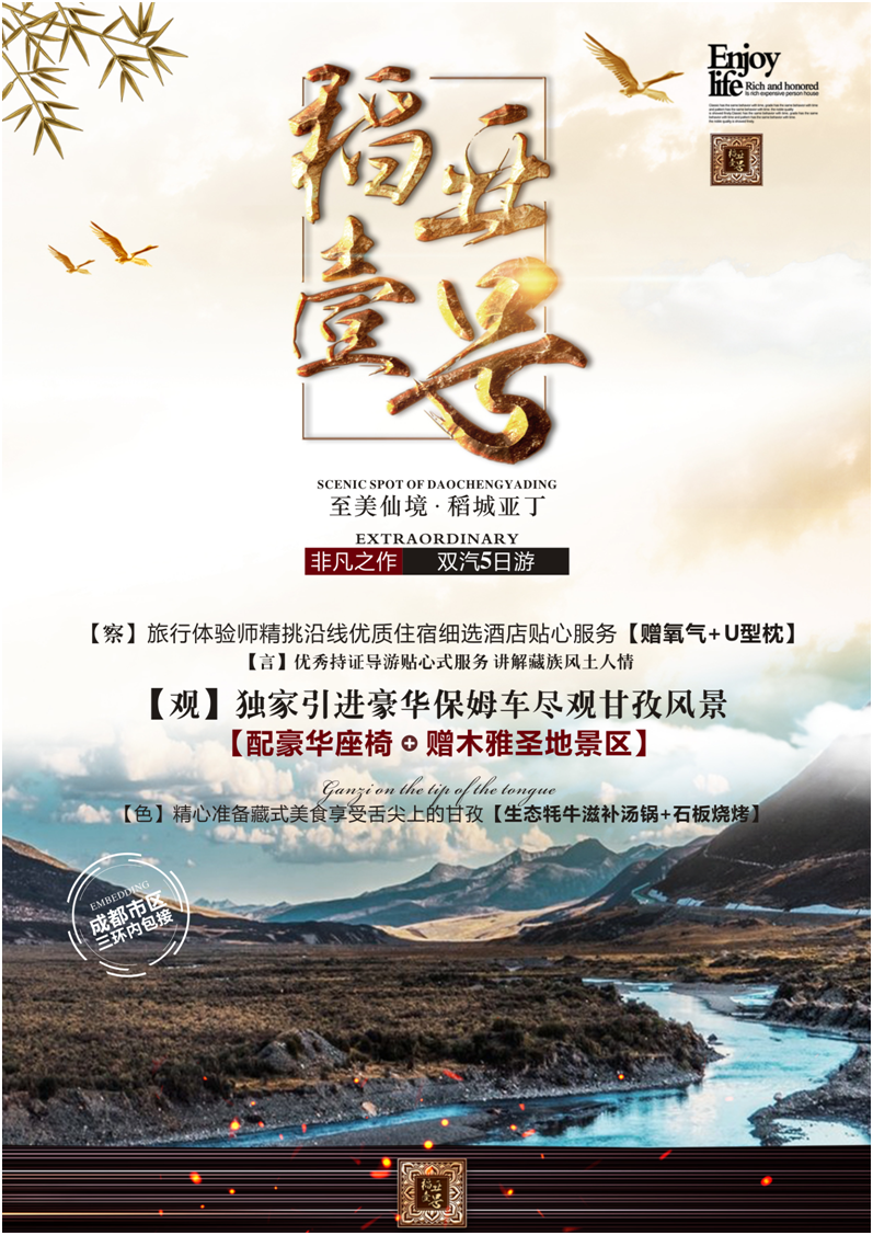4.因亚丁景区内无法提供用餐,景区内中餐请自理,客人可提前自备干粮。
